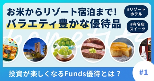 Funds(ファンズ)の一部のファンドでは、分配金に加えて「Funds優待」という特典がもらえるのも魅力です。内容は、グルメギフトや宿泊券、クーポンなど、日常生活に役立つものから体験型のものまで、幅広く用意されています。